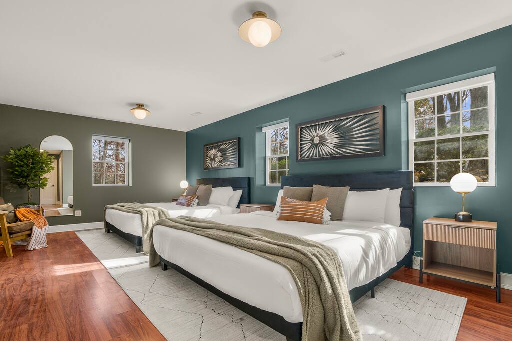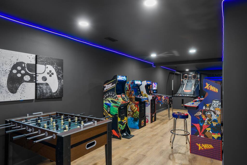 The home layout is as follows: Main level: - Oversized deck with covered seating for 22, circular couch around a propane firepit, 7 person hot tub, 6 person barrel sauna, gas grill, pizza oven, and hammock - Grand dining room with seating for 20 (3 more can fit at kitchen bar in next room) - Living room with ample seating and working gas log fireplace - Renovated kitchen with gas range, two ovens, and everything you need to prepare large meals, with bar seating for 3 - BR1: Master bedroom with king bed, sitting area with electric fireplace - Full bath 1: ensuite bathroom to BR1 with soaking tub, separate shower, and two vanities - BR2: King bedroom - BR3: King bedroom - BR4: King bedroom - Full bath 2: hallway bath with two vanities and shower/tub combo - BR5: King bedroom - BR6: King bedroom - BR7: King bedroom - Full bath 3: hallway bath with shower/tub combo - Half bath 1, near kitchen - Half bath 2, off laundry room - Laundry room with full size washer and dryer Lower level: - Massive additional living room with 65” TV, pool table, shuffleboard, and couch/seating area - State of the art theater room with 120" screen and hi-res projector, surround-sound speakers and subwoofer, seating for 18+ between the full size leather recliners, front row cozy couch, and back row bar stools - Arcade room with five stand-up arcades, digital pinball, skeeball, basketball, foosball, and infinity game table for endless board game play - Additional kitchenette with full size refrigerator and dishwasher - Speakeasy with bar and cozy couch sitting area - Full bath 4: Custom wood and tile bathroom with steam shower and sauna - BR8: Two king bedroom with workspace - BR9: Two twin-over-twin bedroom - Full bath 5: hallway bath with shower/tub combo Things to do nearby: The house is about a 5 minute drive to the slopes, pool, and dining at Massanutten, 4 minutes to the spa, and 5 minutes to the indoor/outdoor Waterpark. The Swift Run Gap entrance to Shenandoah National Park is 15 minutes away with some of the best hiking on the east coast. JMU and everything else in Harrisonburg is 18 minutes away, and there are several breweries, wineries, and restaurants within 15-20 minutes of the house. - Red Oak Manor is pet friendly! We allow up to 4 pets with a $200 pet fee (total, not per pet or per night). - We provide our guests $1500 of coverage for accidental damage to the property or its contents. The cost of this is already embedded in the cleaning fee. - Massanutten offers hiking, skiing, snowboarding, tubing, swimming, dining, spa, ropes course / zip line, golfing, go carts, mini golf, and much more. - There are two driveways plus some parallel parking spots in front of the house. Altogether, the property can accommodate around 10 vehicles - Wifi is fast with a strong signal throughout the house and decks. Seven of the nine bedrooms, plus the downstairs living room and the downstairs theater room, feature a smart TV where you can access all the main streaming services. - We provide a fully stocked coffee bar with multiple coffee drip and Keurig options - Guests can enjoy community pool access in the summer season for a $6 per person fee. - Linens and towels provided - Pack n play, high chair, kid dishes/utensils, and baby monitor provided - We do require a separate rental agreement, which we will send a link to e-sign after you book. There are no additional fees beyond those listed here. Lastly, this property is located within an HOA that requires the community rules to be posted here, so here are those rules: WELCOME TO MASSANUTTEN! This home is in a private residential neighborhood and is part of the Massanutten Property Owners Association (MPOA), governed by its rules and regulations. There are rental homes in all MPOA neighborhoods, but people also live here. Your nearby neighbors may be full-time residents, including families with children, retirees, second-home owners and other guests enjoying their retreat. NOISE • Quiet hours: 10:00 PM - 7:00 AM. • Keep noise indoors during these hours. • No excessive noise at any time, as judged by MPOA or its assigned agents. PARKING • Keep all tires off the road. • Don't block fire hydrants or park in front of another property without written approval from your host. • Park only in designated areas or overflow lot (4007 Peak Dr., Massanutten, VA 22840) • No buses, campers, or RVs to be parked at homes or on roads. Overflow lot is available with written approval from your host. OUTDOOR FIRES • High wildfire risk area! • No open fires. • No unattended fires. • No firepit use during quiet hours (10:00 PM - 7:00 AM). • Firepits and grills may be restricted during local emergency conditions, check MassanuttenVillage(dot)com or electronic sign at entrance for updates. ALCOHOL No open containers on roads or in common areas. PETS • Leash always required when outside. • Clean up after your pets. TRASH • Do not place garbage/trash outside, including screened-in porches, decks or carports. Trash attracts wildlife, which could endanger you and damage the property. • Dumpsters are located at 4003 Peak Dr., Massanutten, VA 22840